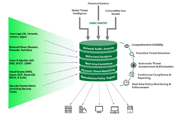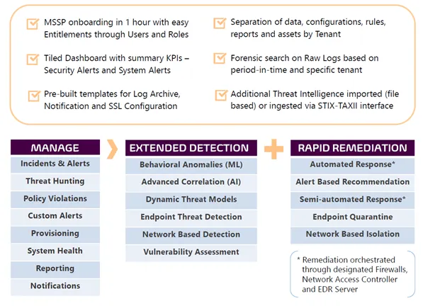 behaviors and host-based suspicious processes through a single pane of glass while ensuring cyber threats, exploits and attacks are detected early and accurately with automated intelligence, advanced correlation and real-time analytics. The solution empowers SOC analysts to respond to real alerts by cutting out the noise and providing a simplified path to threat containment and risk mitigation